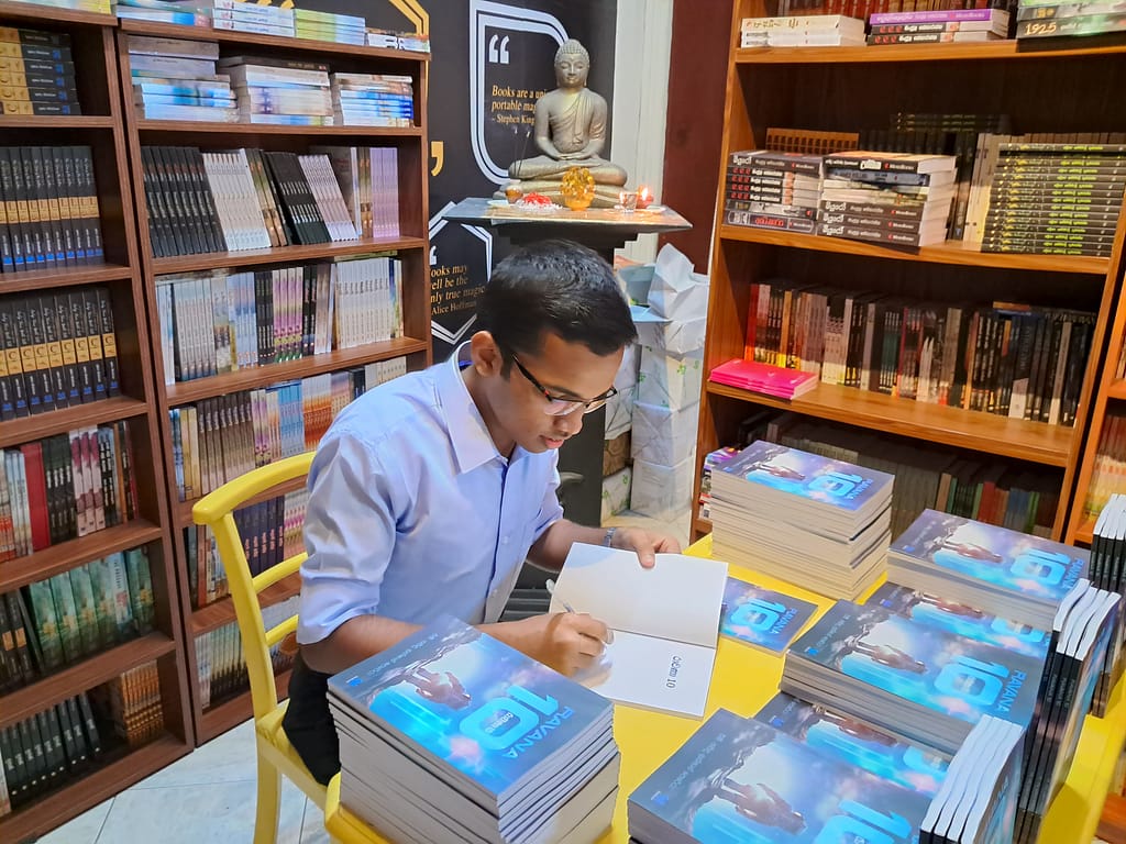 The launch day was a memorable celebration, filled with energy and enthusiasm from family, friends, and supporters. The venue came alive with space-themed decorations, blending elements of Sri Lankan culture with futuristic vibes, symbolizing the story’s unique essence. Guests had the opportunity to explore behind-the-scenes stories about the making of Ravana 10, from my initial inspiration to the long hours of research and writing that shaped this tale.